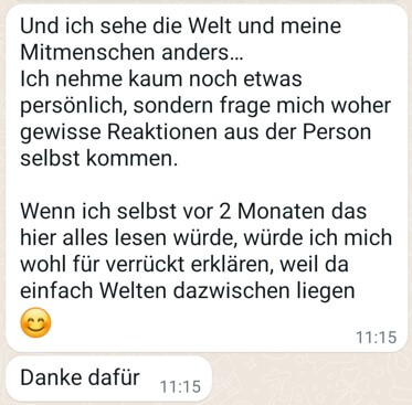 Ich habe Innere Stabilität gewonnen und kann viel offener über meine Emotionen und Probleme/Themen reden.