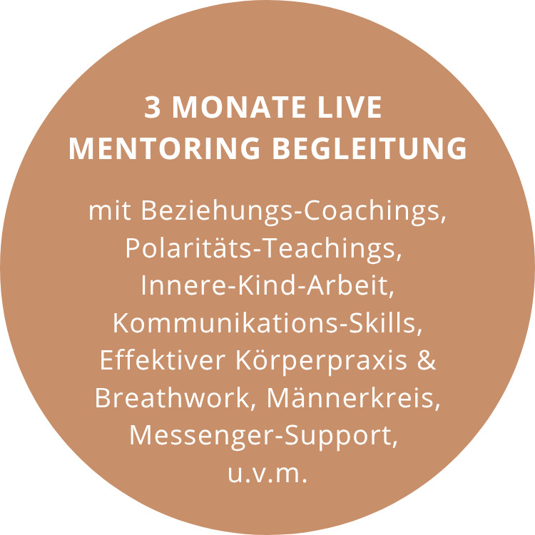 wöchentliche LIVE-Coaching-Calls (12x) im festen Männerkreis mit Raum für deine individuellen Beziehungsfragen.
